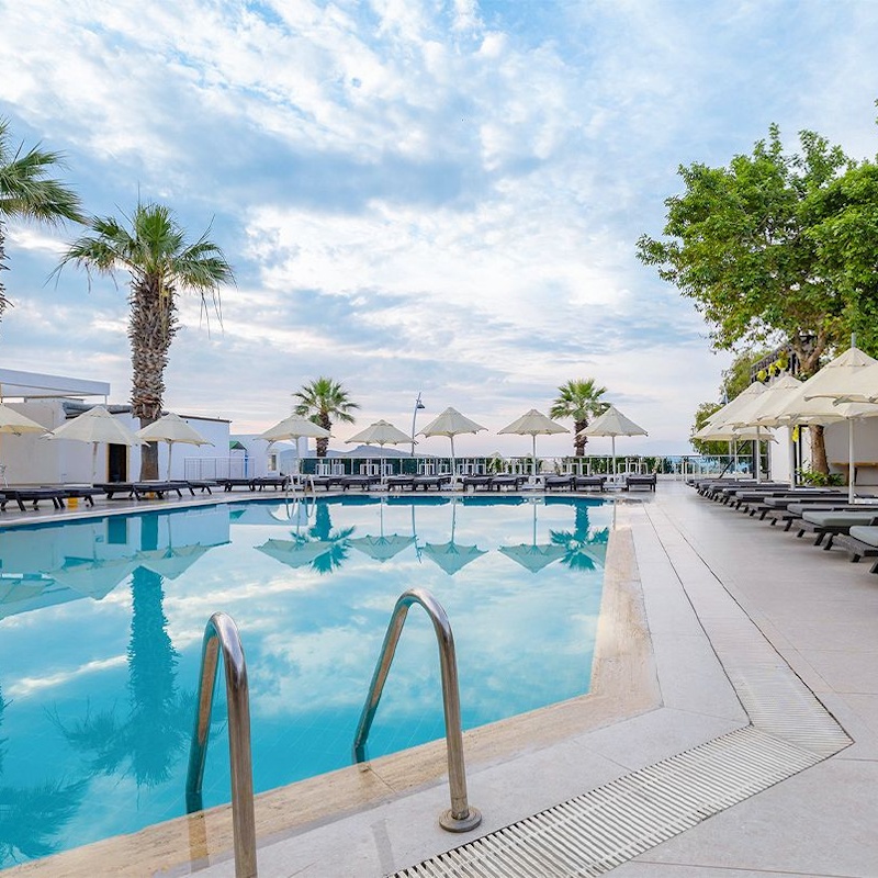 L'hôtel Petunya Beach 4* est un établissement convivial situé directement en bord de mer, sur la plage de Yahi Yals à Ortakent. Ce complexe, construit en 1990 et rénové durant l'hiver 2024, s'étend sur une surface de 17 000 m² et se compose de 9 blocs abritant 242 chambres. Vous profiterez d'un cadre agréable et de la proximité immédiate avec la plage privée de sable et de galets.